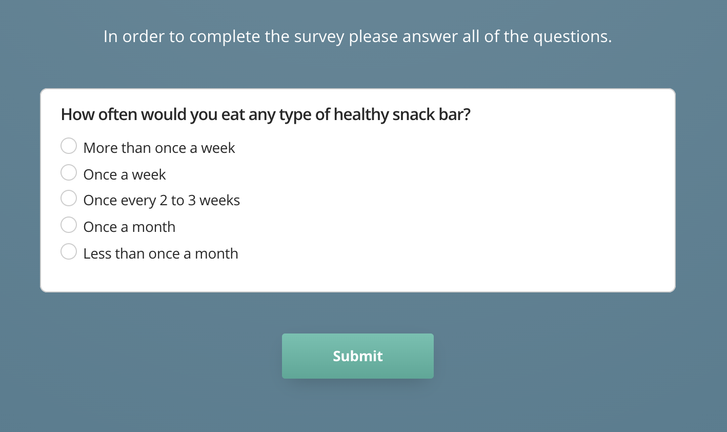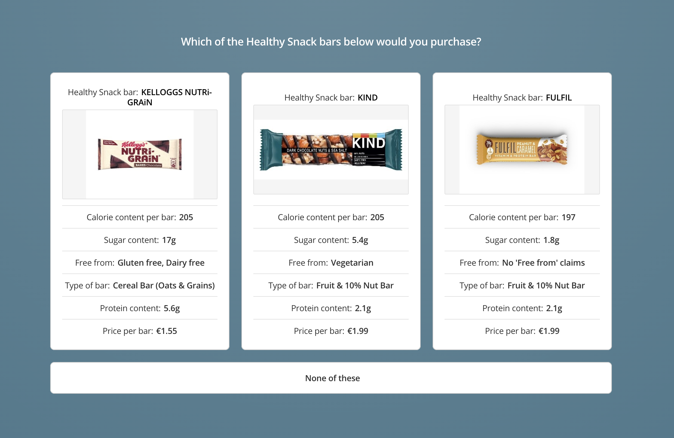 The brand engaged EPIC Conjoint to design a competitive conjoint survey. Five health bars were selected by the brand for the study.