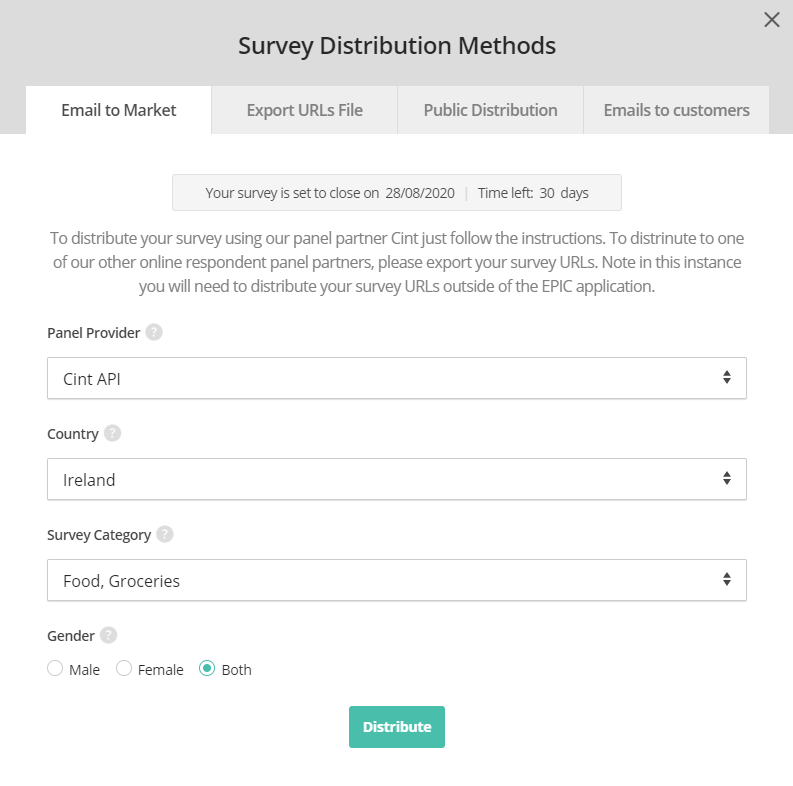 The survey was seamlessly distributed to a target sample in Ireland using an API with global online panel provider Cint. 250 successfully completed surveys, sufficient for statistical significance, were captured within the space of three hours.