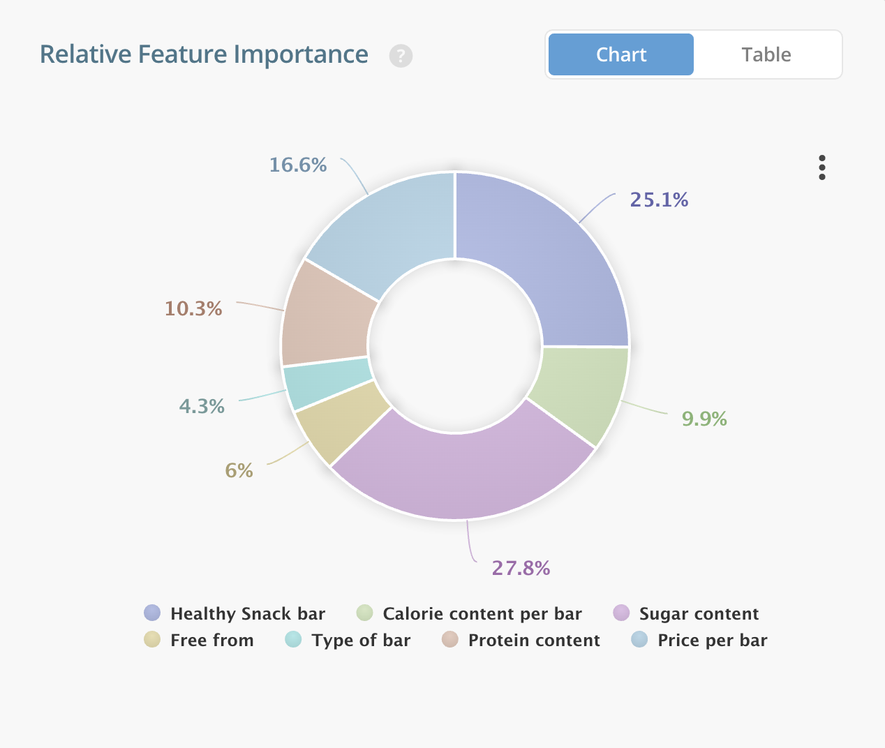 Our relative importance chart shows that sugar content commanded the highest relative importance score among all attributes tested. This learning suggests where the brand should focus its messaging.